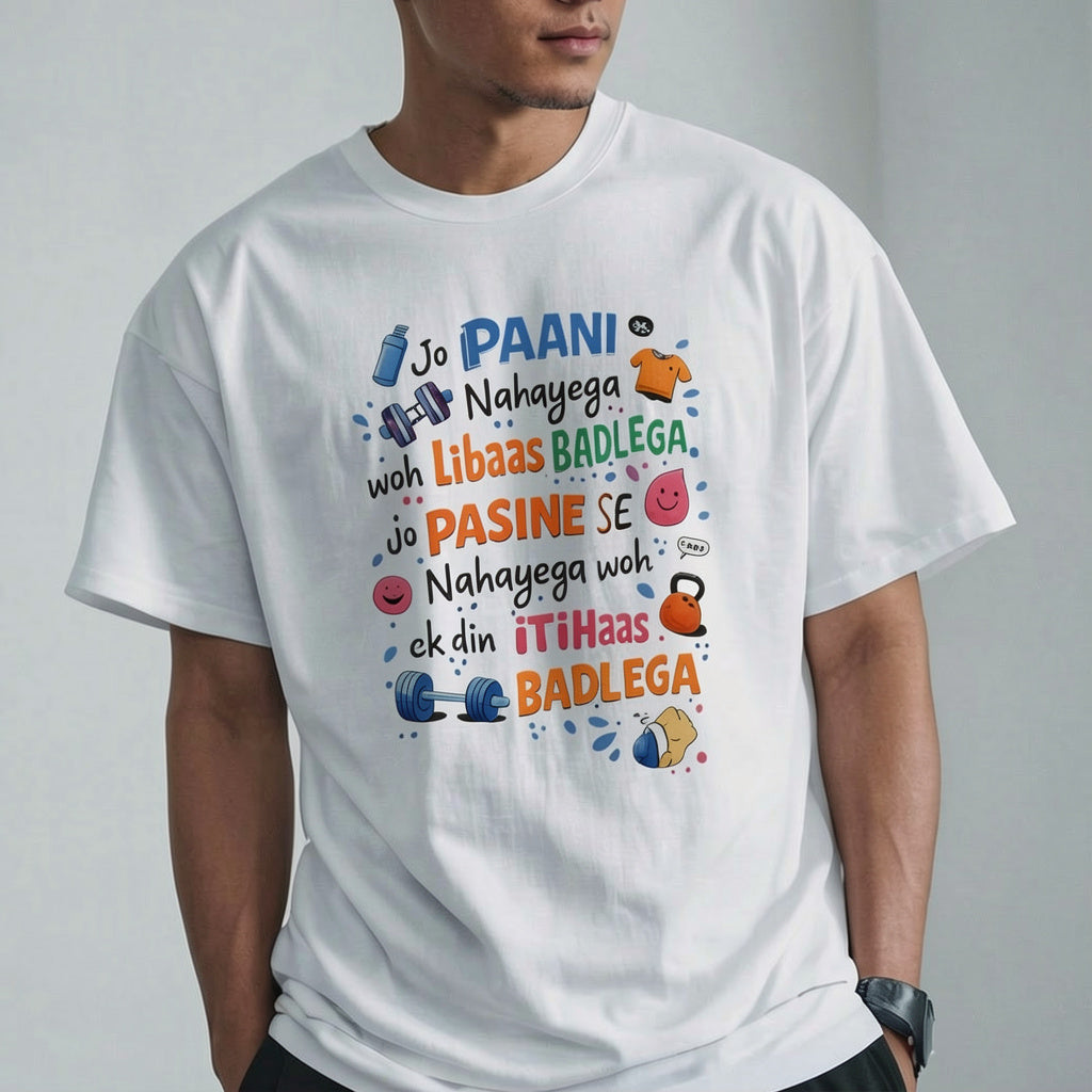 A fun and relatable “Paani” design, perfect for those who show up to the gym… but mostly for the hydration and vibes.